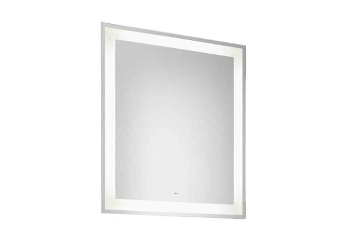 Espejo rectangular con iluminación LED perimetral de intensidad regulables y placa antivaho, activables mediante sensores.