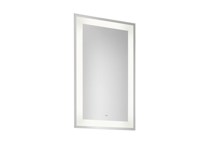 Espejo rectangular con iluminación LED perimetral de intensidad regulables y placa antivaho, activables mediante sensores.