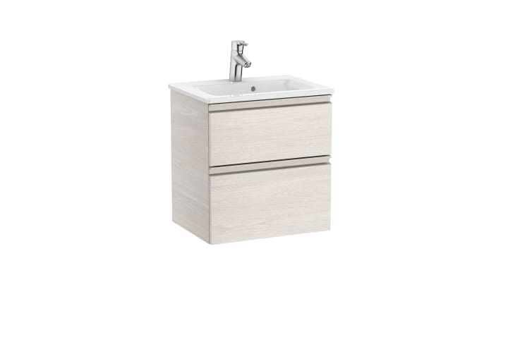 Unik GAP compac . Conjunto de mueble base dos cajones modelo GAP dos cajones y lavabo compacto fondo reducido. Acabado fresno nórdico medida 500x380. Cajones con cierre amortiguado. No incluye grifería