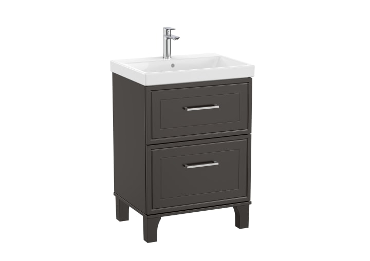 UNIK - Conjunto de mueble base con dos cajones y lavabo. Patas integradas. No incluye grifería.
