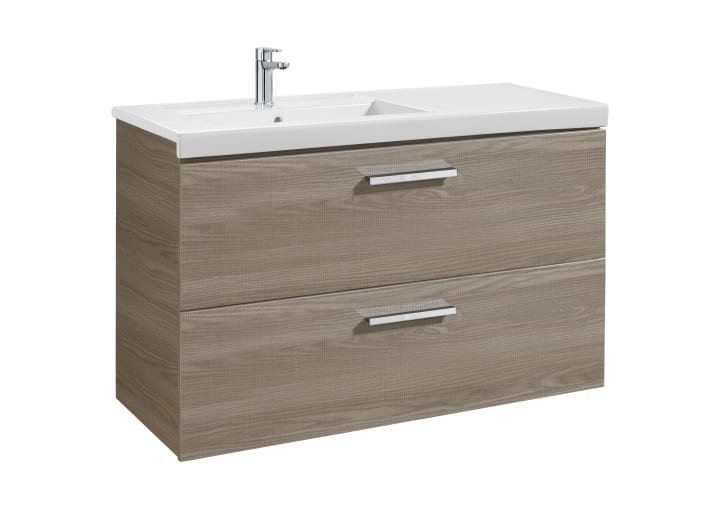 UNIK, MUEBLE Y LAVABO, MODELO PRISMA 2 CAJONES FRESNO CON LAVABO DESPLAZADO a izda. MEDIDA 1100X460