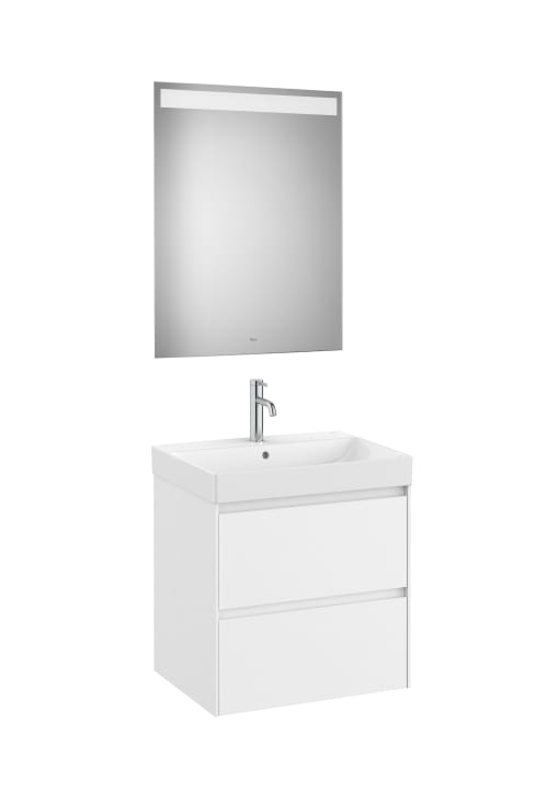 PACK, MUEBLE LAVABO Y ESPEJO, MODELO ONA ACABADO BLANCO MATE Y MEDIDA 600X460