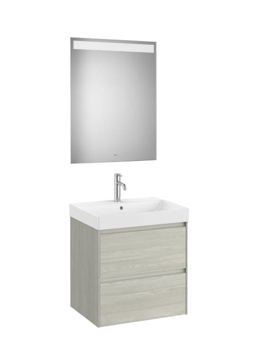 PACK, MUEBLE LAVABO Y ESPEJO, MODELO ONA ACABADO ROBLE CLARO Y MEDIDA 600X460