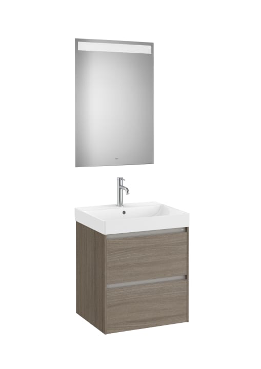 PACK, MUEBLE LAVABO Y ESPEJO, MODELO ONA ACABADO OLMO OSCURO Y MEDIDA 550X460