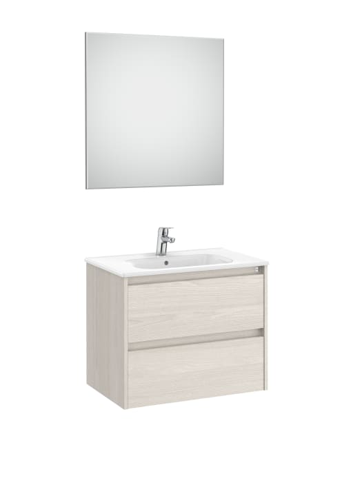 PACK, MUEBLE LAVABO Y ESPEJO, MODELO TENET 2 CAJONES ACABADO NORDIC ASH Y LAVABO. MEDIDA 700X453