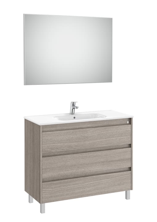 PACK, MUEBLE LAVABO Y ESPEJO, MODELO TENET 3 CAJONES ACABADO CITY OAK Y LAVABO. MEDIDA 1000X453