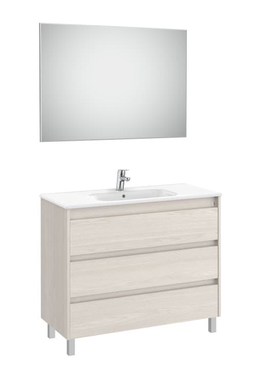 PACK, MUEBLE LAVABO Y ESPEJO, MODELO TENET 3 CAJONES ACABADO NORDICA ASH Y LAVABO. MEDIDA 1000X453