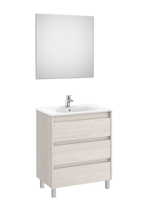 PACK, MUEBLE LAVABO Y ESPEJO, MODELO TENET 3 CAJONES ACABADO NORDIC ASH Y LAVABO. MEDIDA 700X453