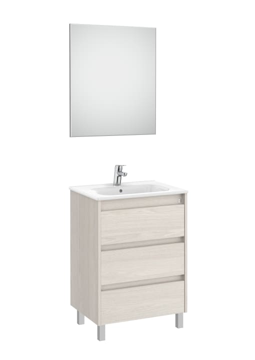 PACK, MUEBLE LAVABO Y ESPEJO, MODELO TENET 3 CAJONES ACABADO NORDIC ASH Y LAVABO. MEDIDA 600X453