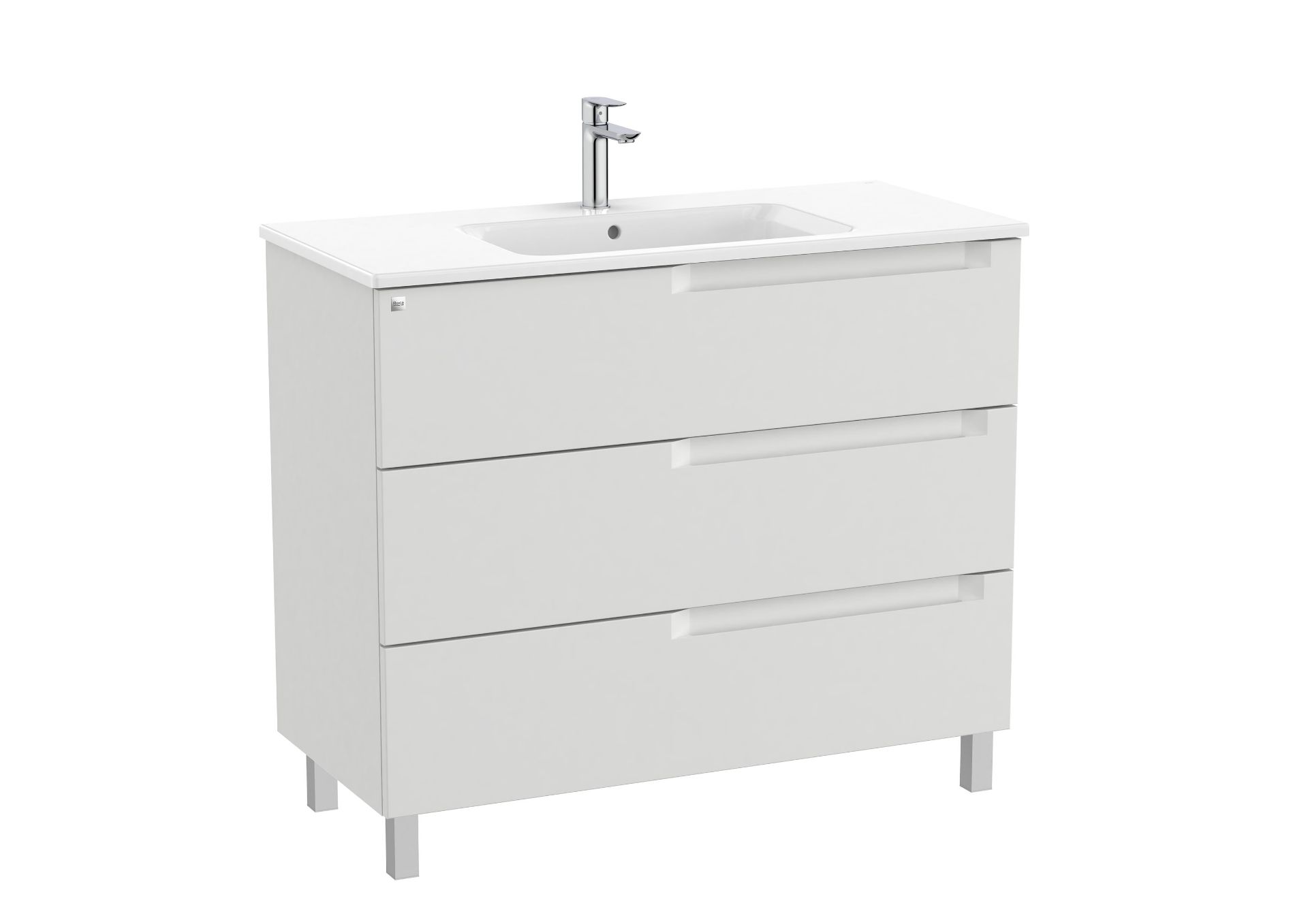 Unik - Conjunto de mueble de tres cajones y lavabo centrado. Incluye patas. No incluye grifería.