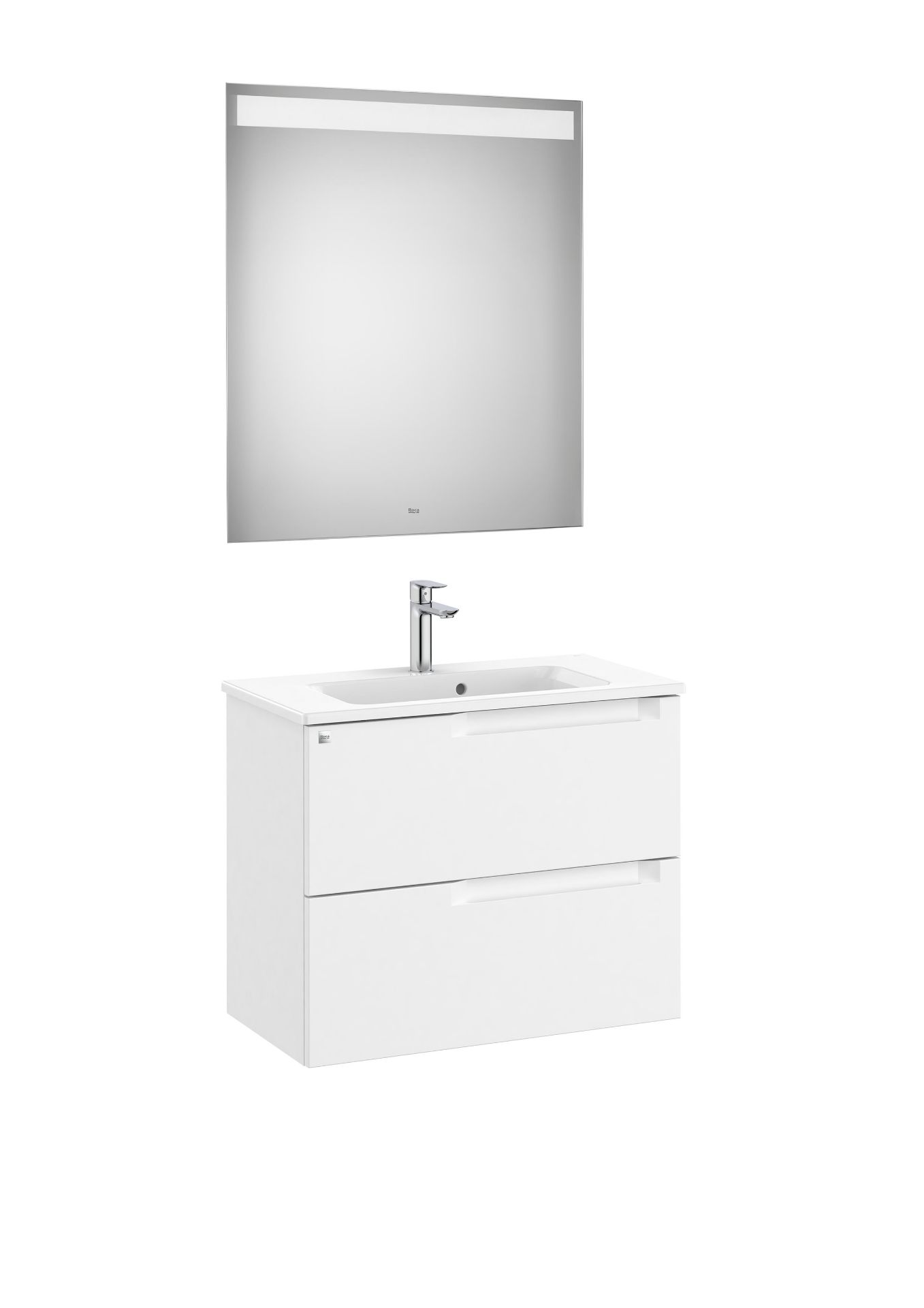PACK COMPACTO, MUEBLE LAVABO Y ESPEJO, MODELO ALEYDA 2 CAJONES ACABADO BLANCO MATE CON LAVABO FONDO REDUCIDO. MEDIDA700X380