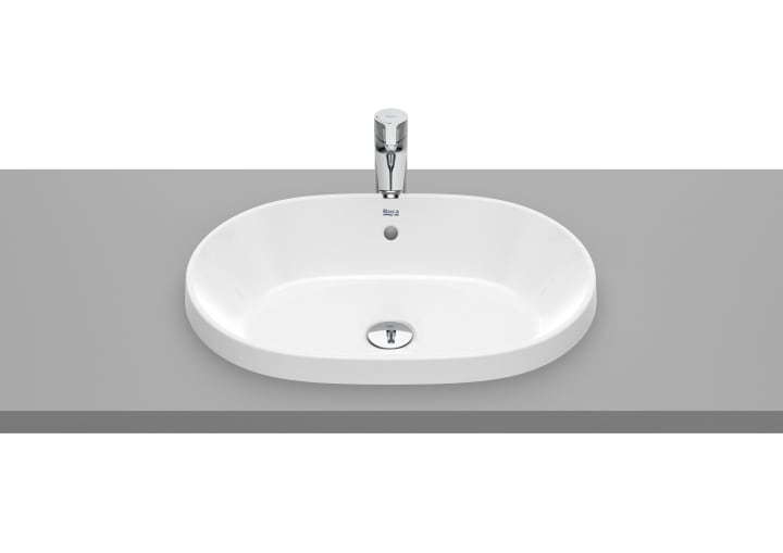 Lavabo de porcelana para encimera, encastrado, modelo GAP sin orificio para grifería acabado blanco, medida 550x390x40 mm. No incluye grifería.