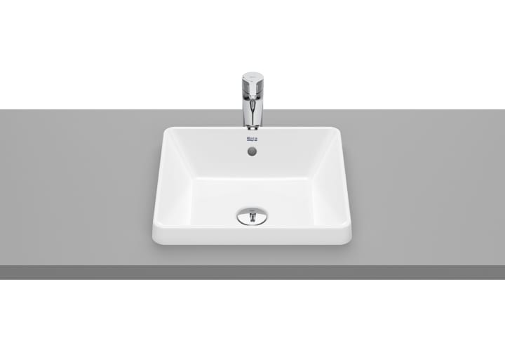 Lavabo de porcelana para encimera, encastrado, modelo GAP sin orificio para grifería acabado blanco, medida 390x370x40 mm. No incluye grifería.