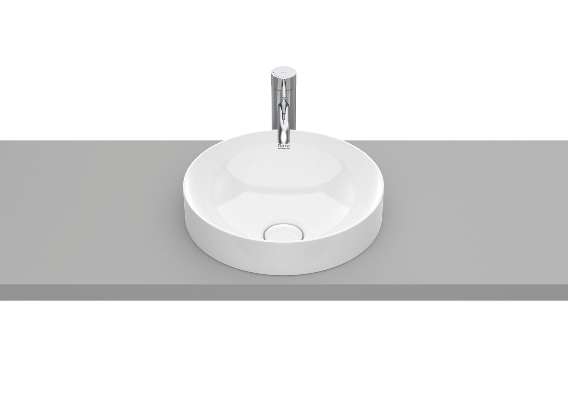 ROUND - Lavabo de FINECERAMIC® de encimera. No incluye griferia. Incluye desague con tapón fijo abierto de porcelana