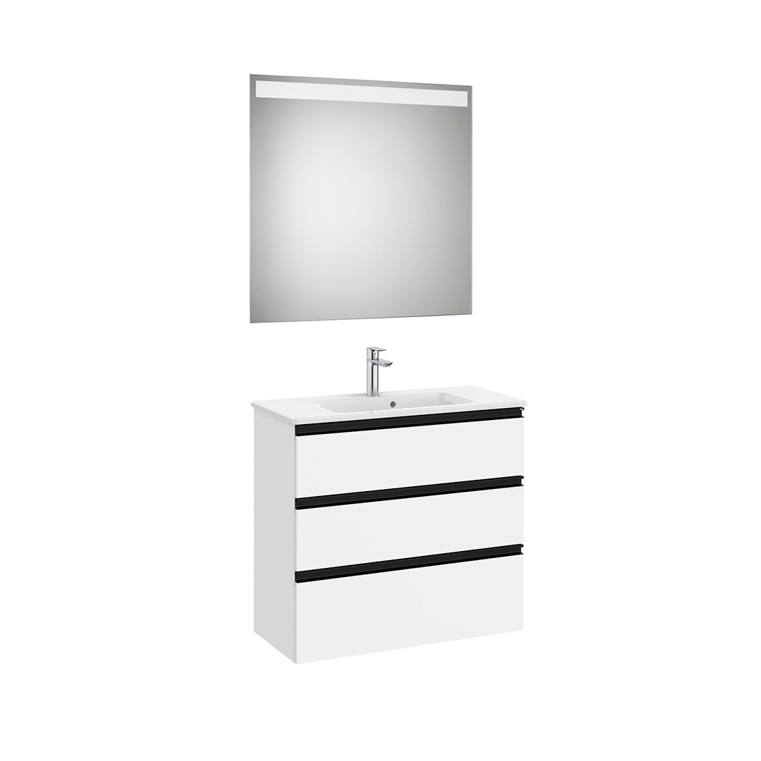 PACK COMPACTO, MUEBLE LAVABO Y ESPEJO, MODELO GAP 3 CAJONES ACABADO BLANCO MATE CON LAVABO FONDO REDUCIDO. MEDIDA 800X380