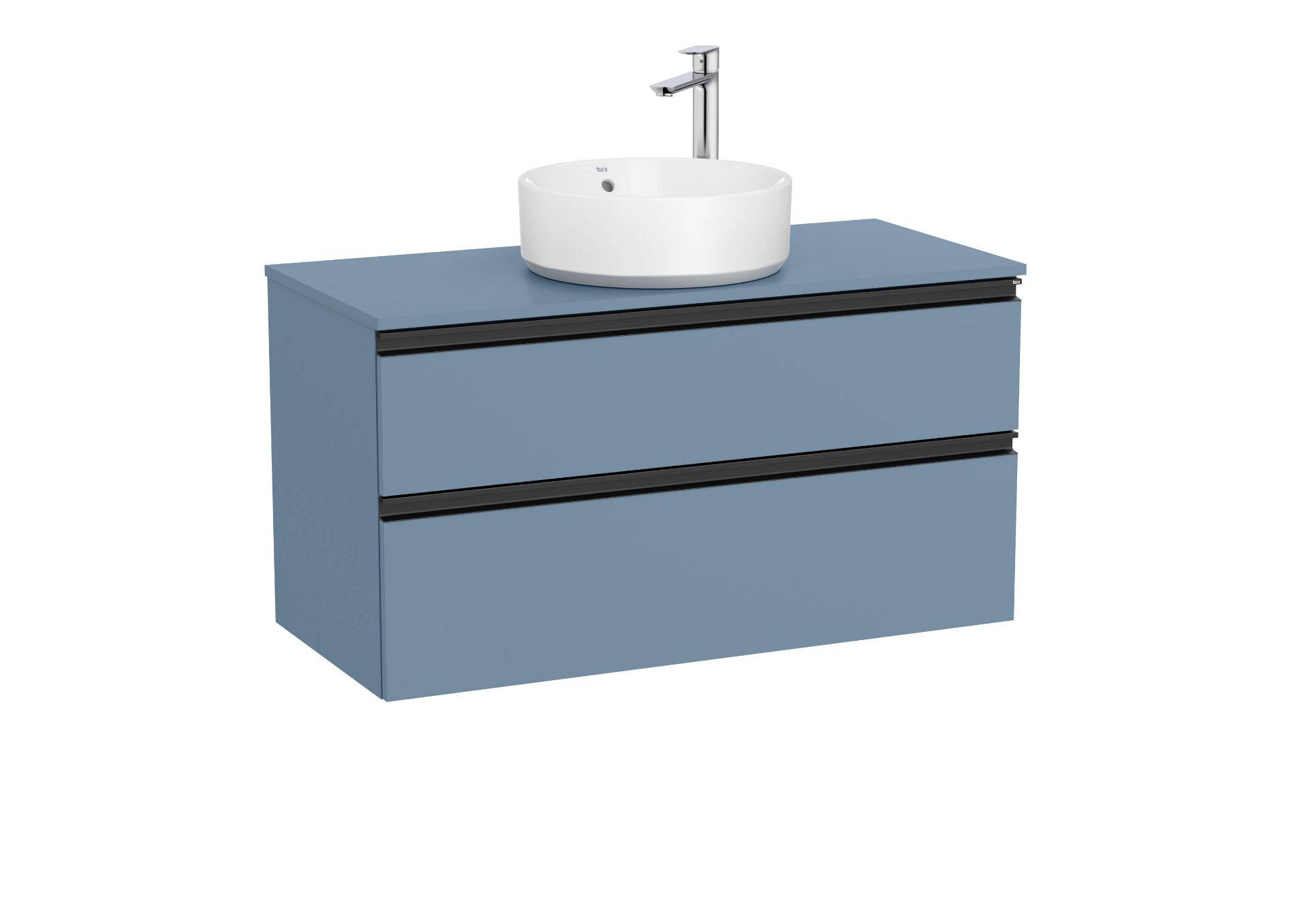 Unik GAP. Compuesto por mueble base modelo GAP dos cajones para lavabo sobreencimera compatible. Acabado azul mate medida 1000x460. Cajones con cierre amortiguado. No incluye lavabo y grifería
