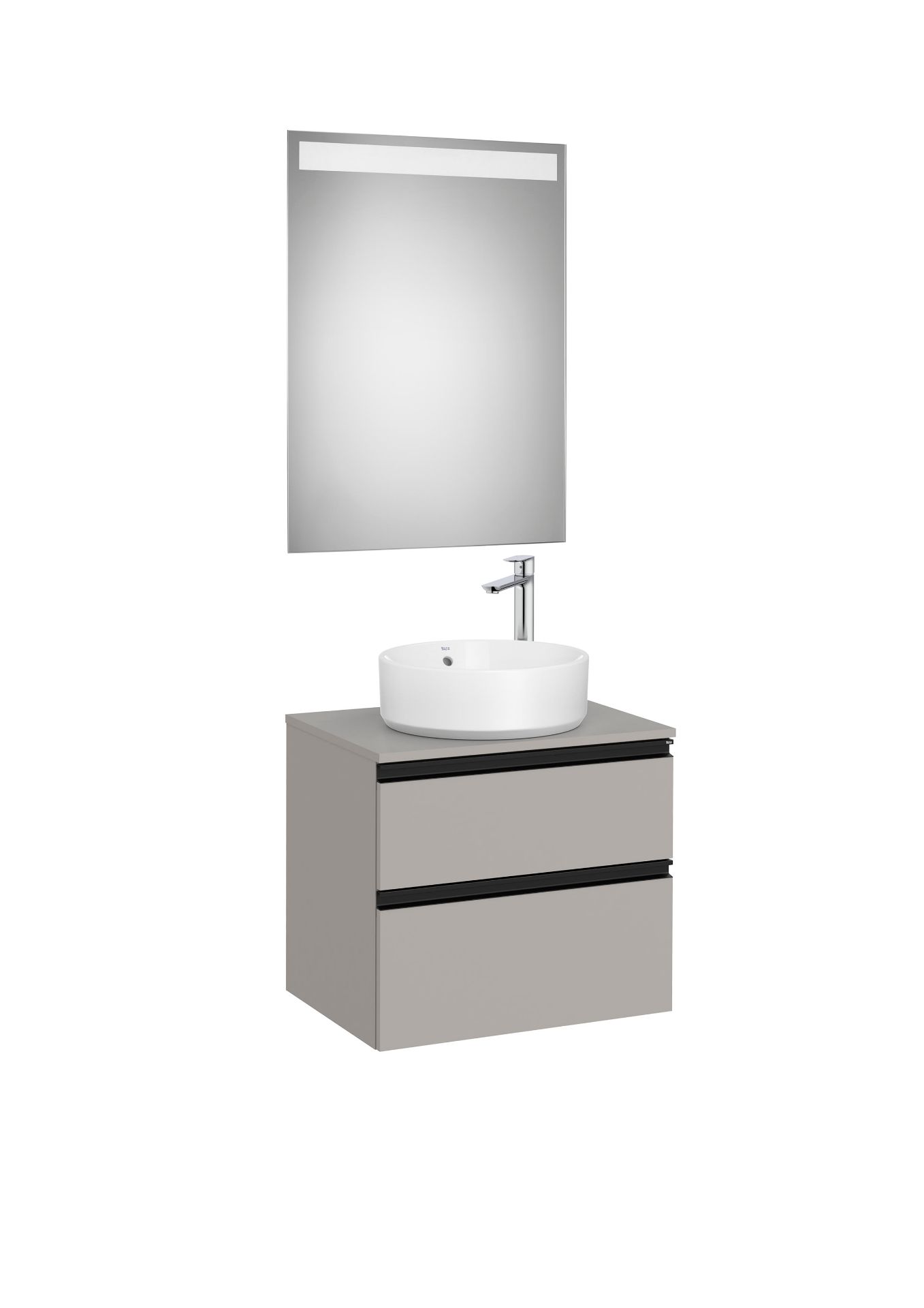 PACK, MUEBLE Y ESPEJO, MODELO GAP 2 CAJONES GRIS MATE PARA LAVABO SOBREENCIMERA CENTRADO MEDIDA 600X460