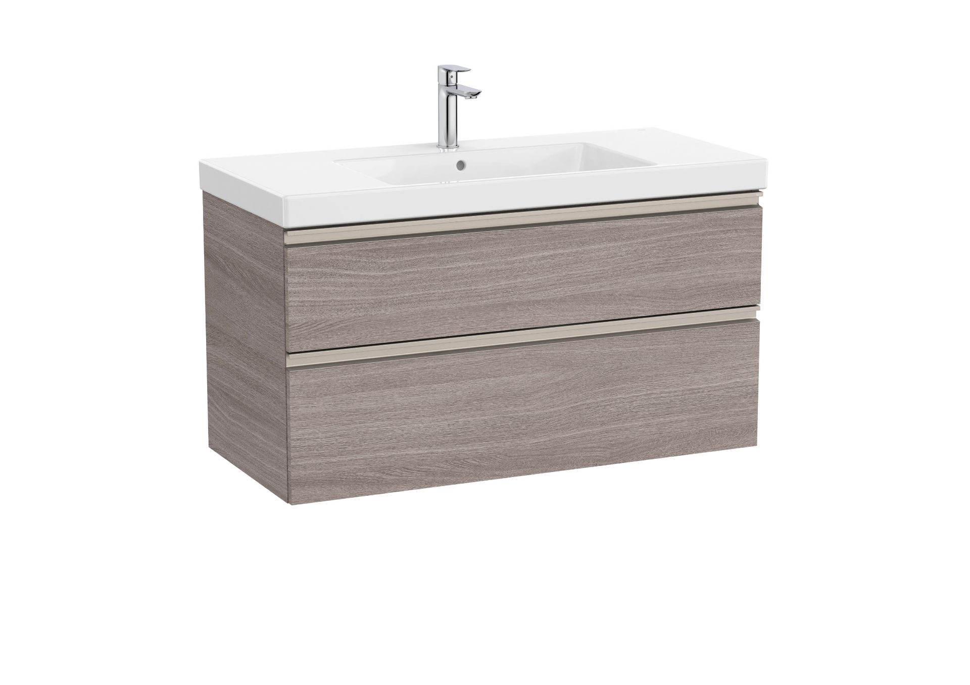 Unik GAP. Conjunto de mueble base dos cajones modelo GAP con lavabo Plus centrado. Acabado roble city medida 1000x460. Cajones con cierre amortiguado. No incluye grifería