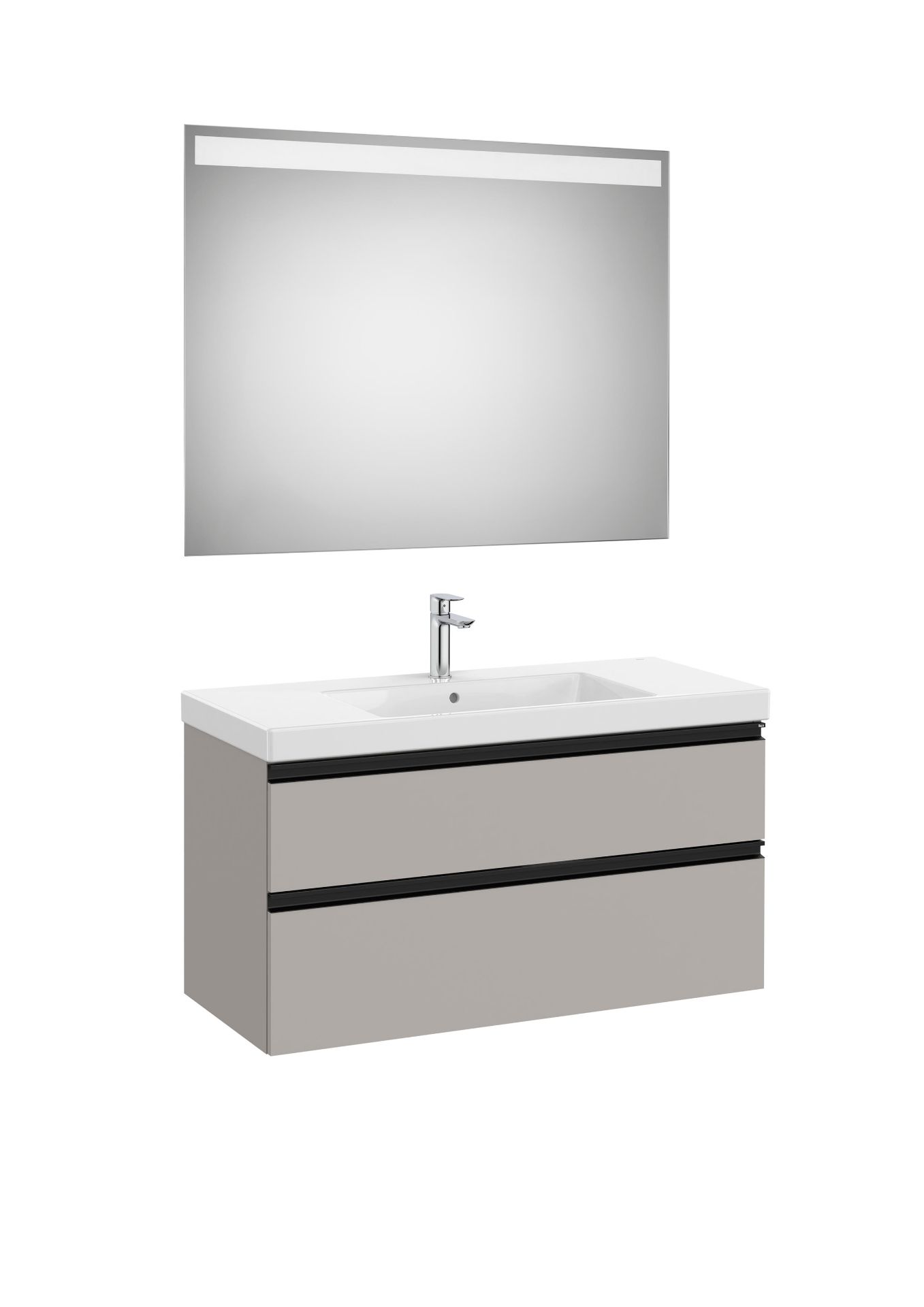 Pack GAP. Conjunto de mueble base dos cajones modelo GAP con lavabo Plus centrado y espejo EIDOS . Acabado gris mate medida 1000x460. Cajones con cierre amortiguado. No incluye grifería