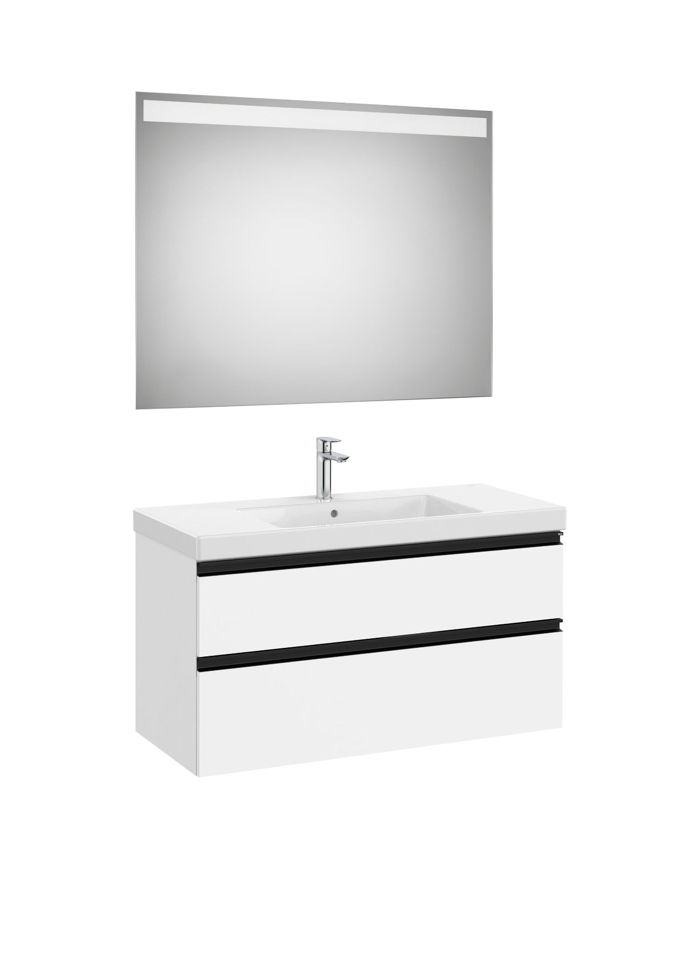 PACK, MUEBLE LAVABO PLUS Y ESPEJO, MODELO GAP 2 CAJONES CON LAVABO CENTRADO ACABADO BLANCO MATE. MEDIDA 1000X460