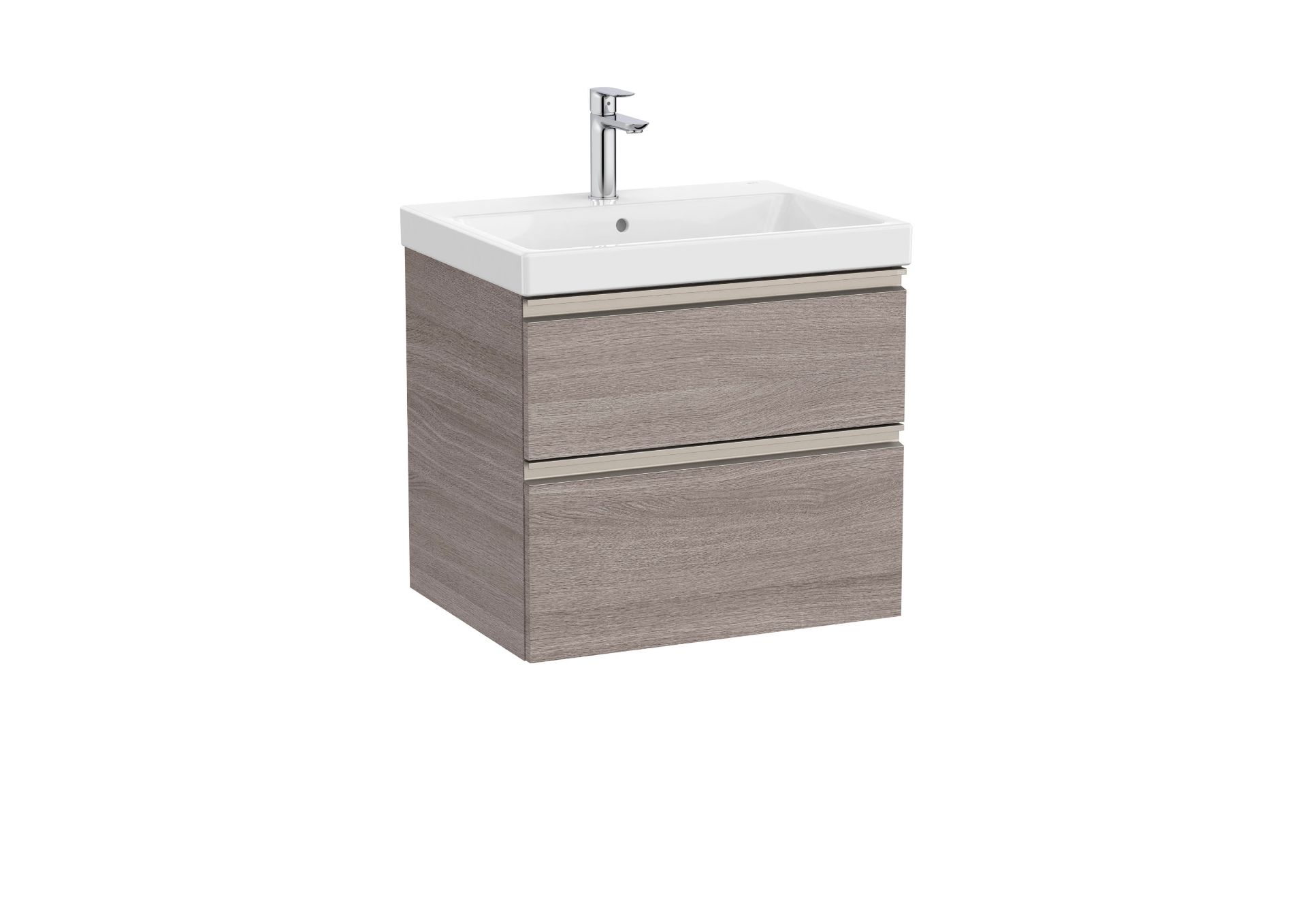 Unik GAP. Conjunto de mueble base dos cajones modelo GAP con lavabo Plus. Acabado roble city medida 600x460. Cajones con cierre amortiguado. No incluye grifería