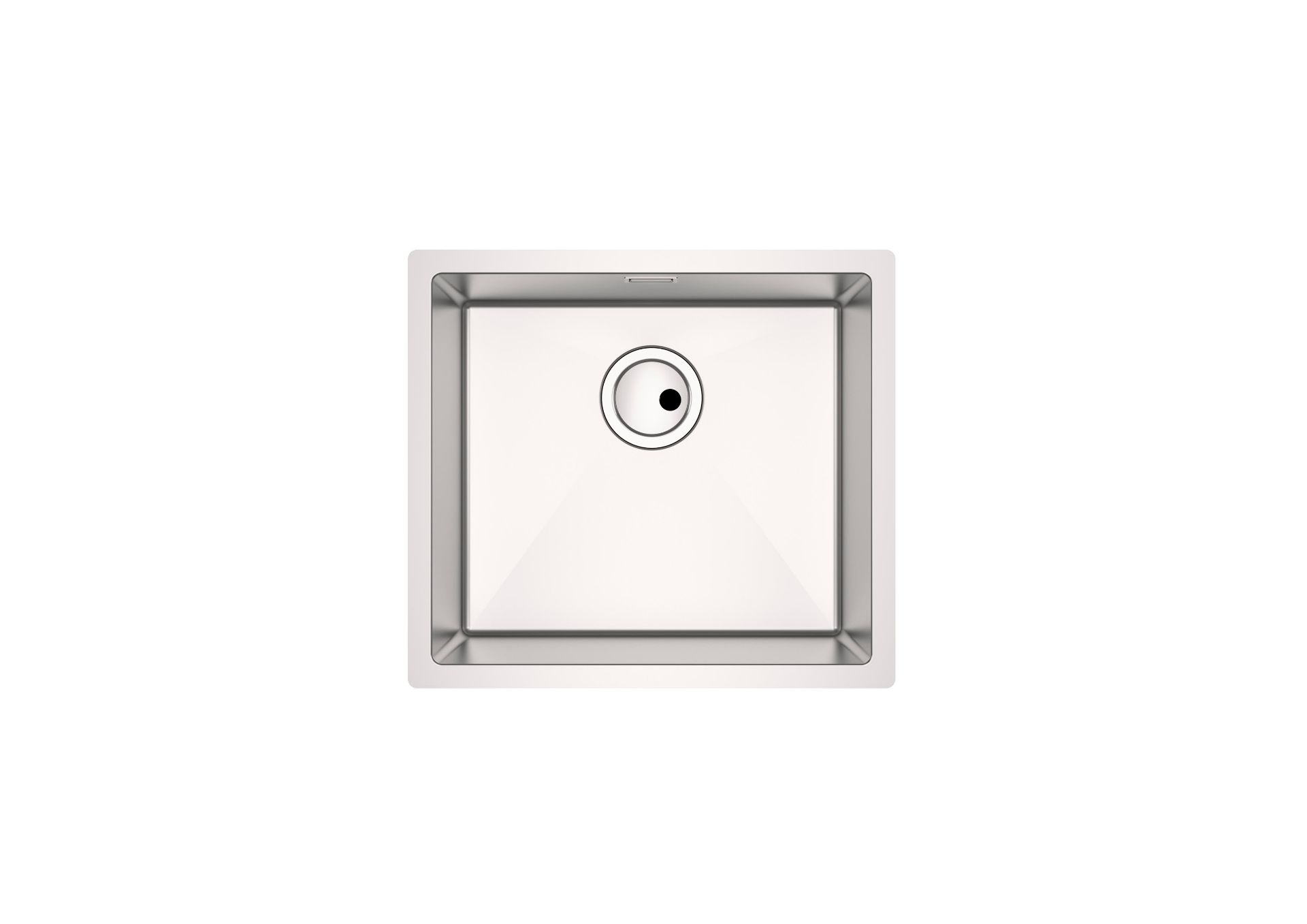 Fregadero de 1 cubeta de acero inoxidable con válvula 3½” y desagüe. Forma cuadrado. Medidas 450x400x200 mm