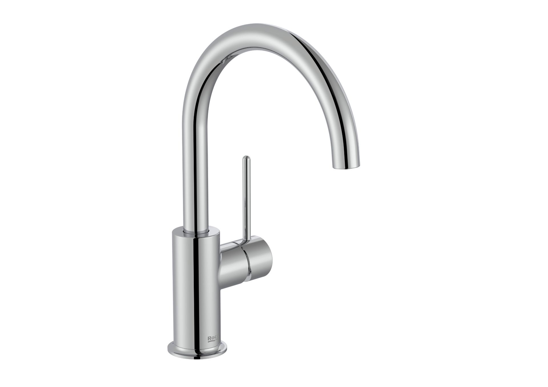 GRIFO MONOMANDO LAVABO NU CAÑO CURVO CUERPO LISO MANETA LATERAL CROMADO
