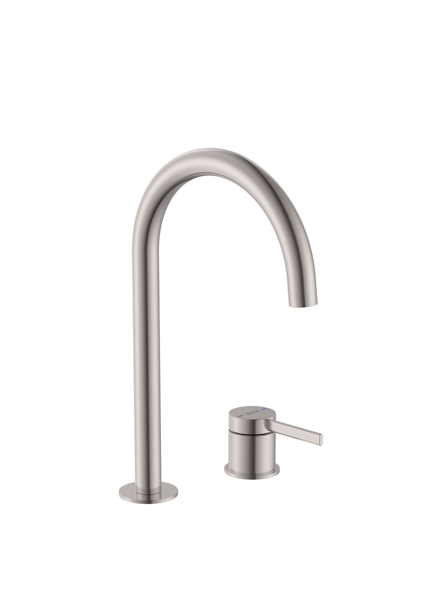 Grifo monomando para lavabo ONA caño alto (altura del caño 283mm), cuerpo liso acabado acero inoxidable. Con maneta de repisa, aireador y enlaces de alimentación flexible. Incluye válvula click-clack.