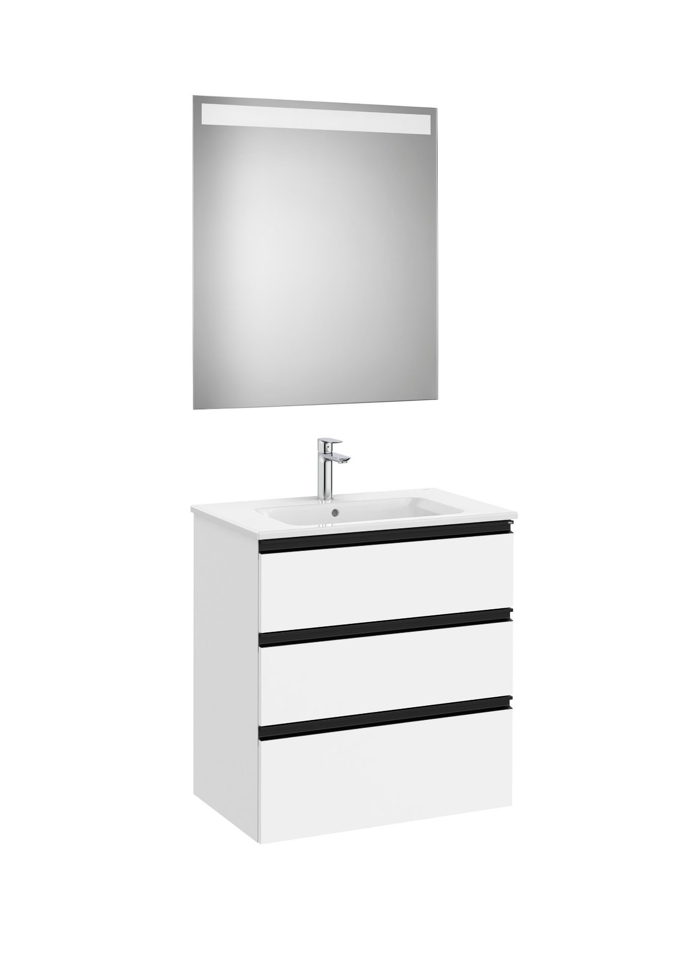 Pack GAP. Conjunto de mueble base tres cajones modelo GAP con lavabo centrado y espejo EIDOS . Acabado blanco mate medida 700x460. Cajones con cierre amortiguado. No incluye grifería
