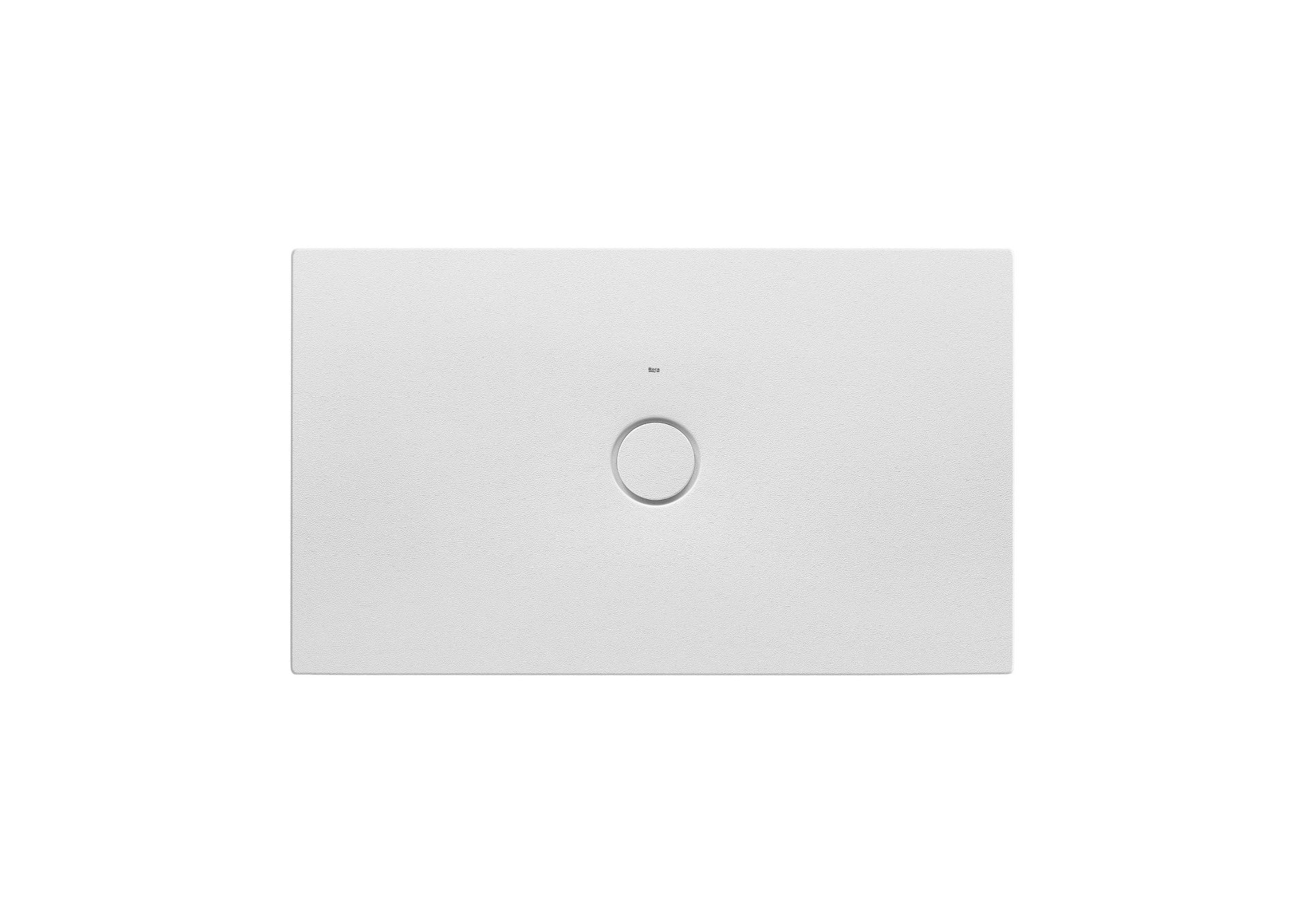 Plato de ducha CRATOS 1200x700x35 mm de Senceramic. Textura antideslizante, extraplano. Incluye desagüe de gran caudal con tapón de porcelana texturizado