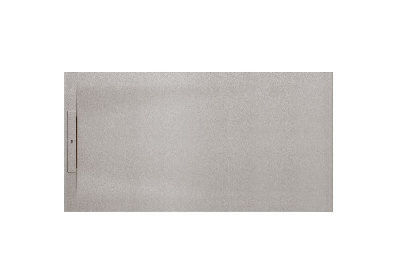 Plato de ducha PYROS 1800x900 mm STONEX con textura arena antideslizante. Incluye válvula de desagüe y rejilla.