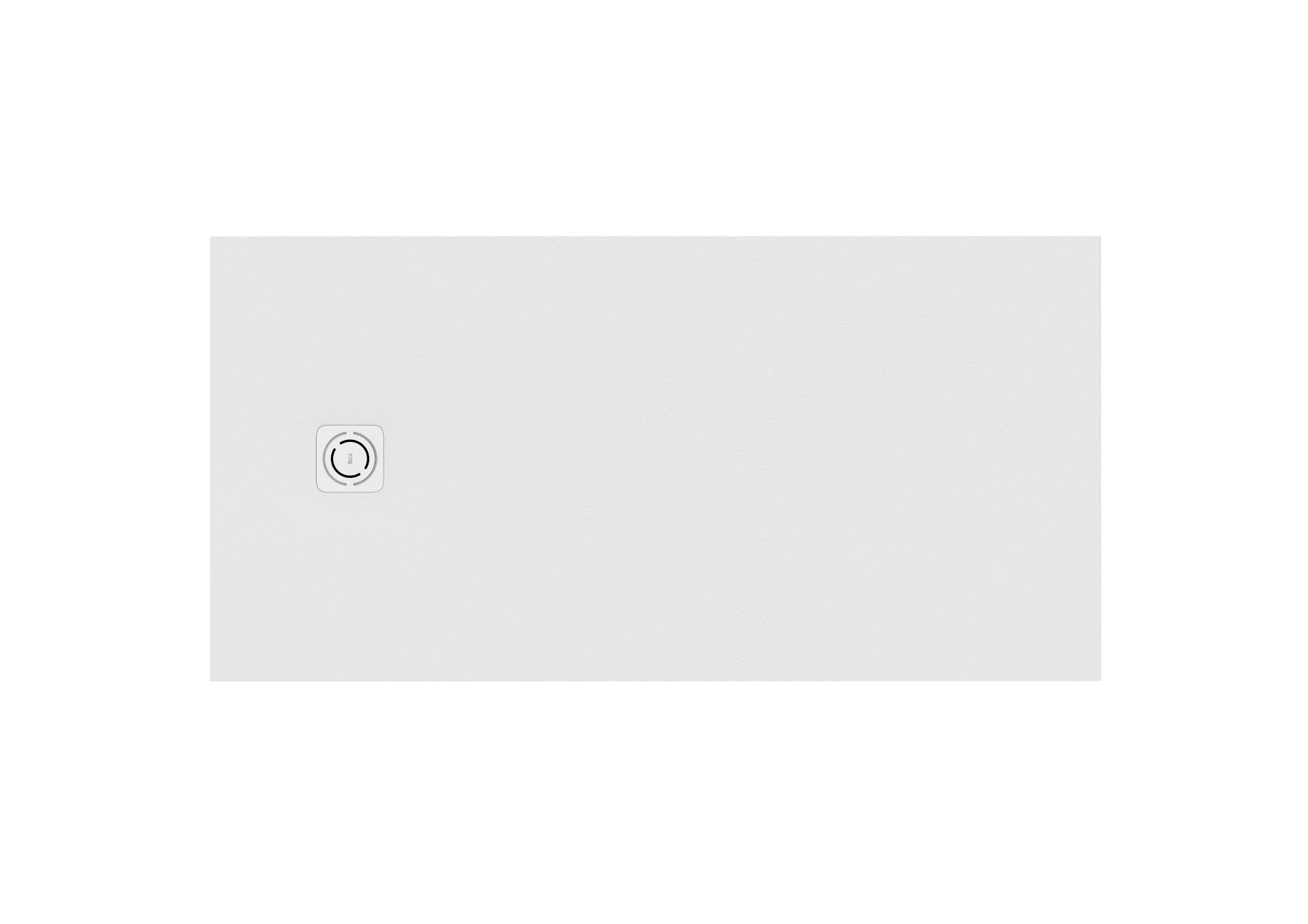 Plato de ducha TERRAN 1400x1000 mm rectangular extraplano STONEX con textura grava andeslizante. Incluye válvula de desagüe y rejilla TWIST en el mismo acabado de color.
