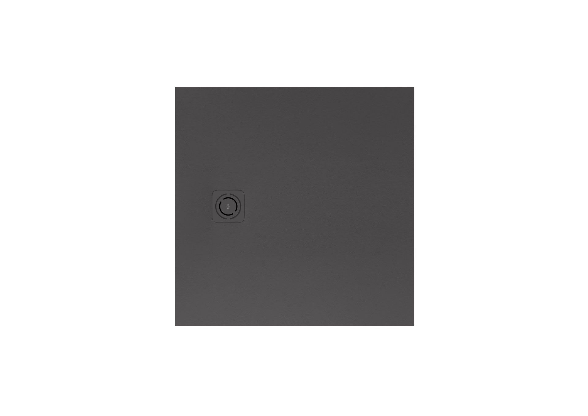 Plato de ducha TERRAN 900x900 mm cuadrado extraplano STONEX con textura grava andeslizante. Incluye válvula de desagüe y rejilla TWIST en el mismo acabado de color.
