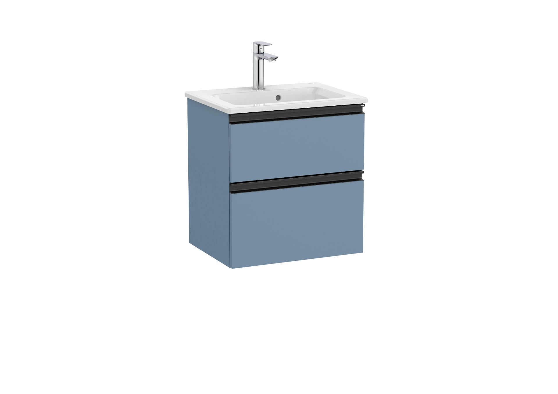 Unik GAP compac . Conjunto de mueble base dos cajones modelo GAP dos cajones y lavabo compacto fondo reducido. Acabado azul mate medida 500x380. Cajones con cierre amortiguado. No incluye grifería