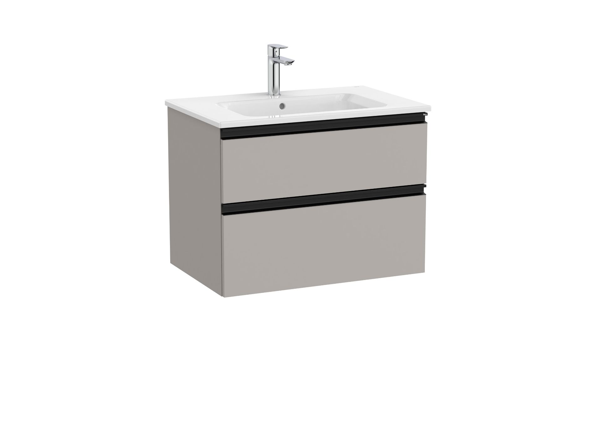 Unik GAP. Conjunto de mueble base dos cajones modelo GAP y lavabo centrado. Acabado gris mate medida 700x460. Cajones con cierre amortiguado. No incluye grifería