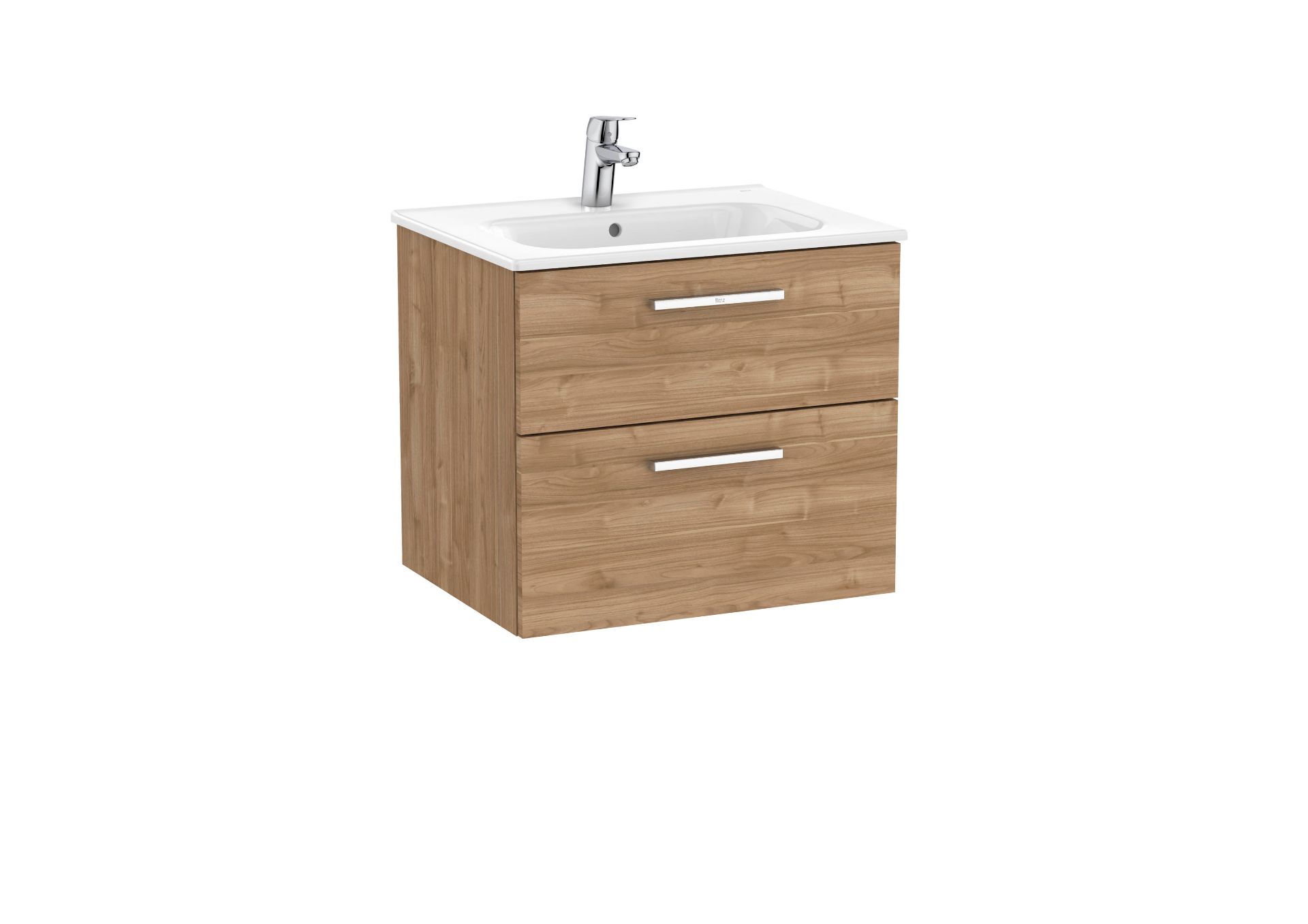 Unik VICTORIA. Conjunto de mueble base dos cajones modelo VICTORIA y lavabo centrado. Acabado nogal medida 600x453. Cajones con cierre amortiguado. No incluye grifería