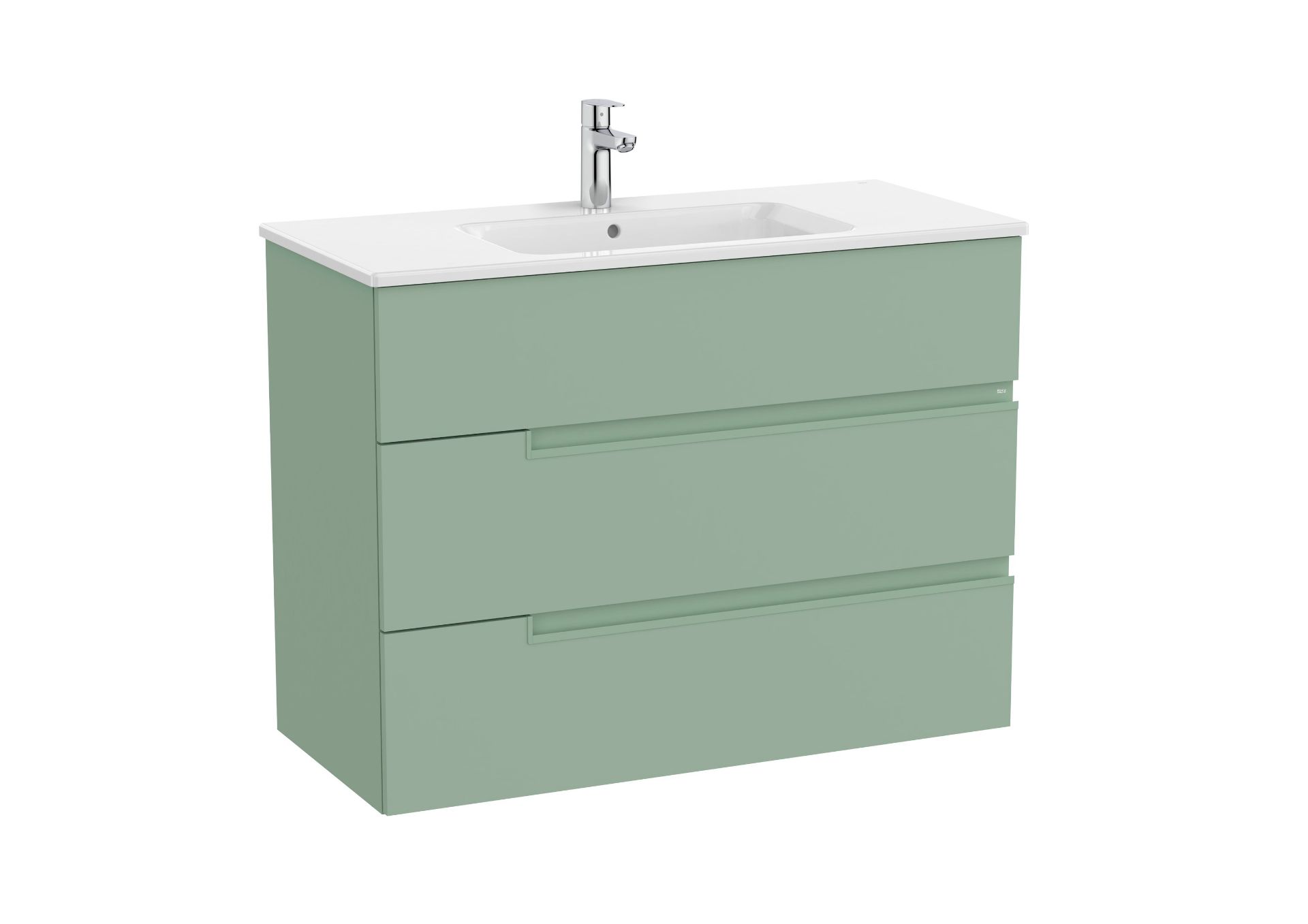 UNIK, MUEBLE Y LAVABO, MODELO VICTORIA-N VERSION 2024 3 CAJONES VERDE SAVIA. MEDIDA 1000X460