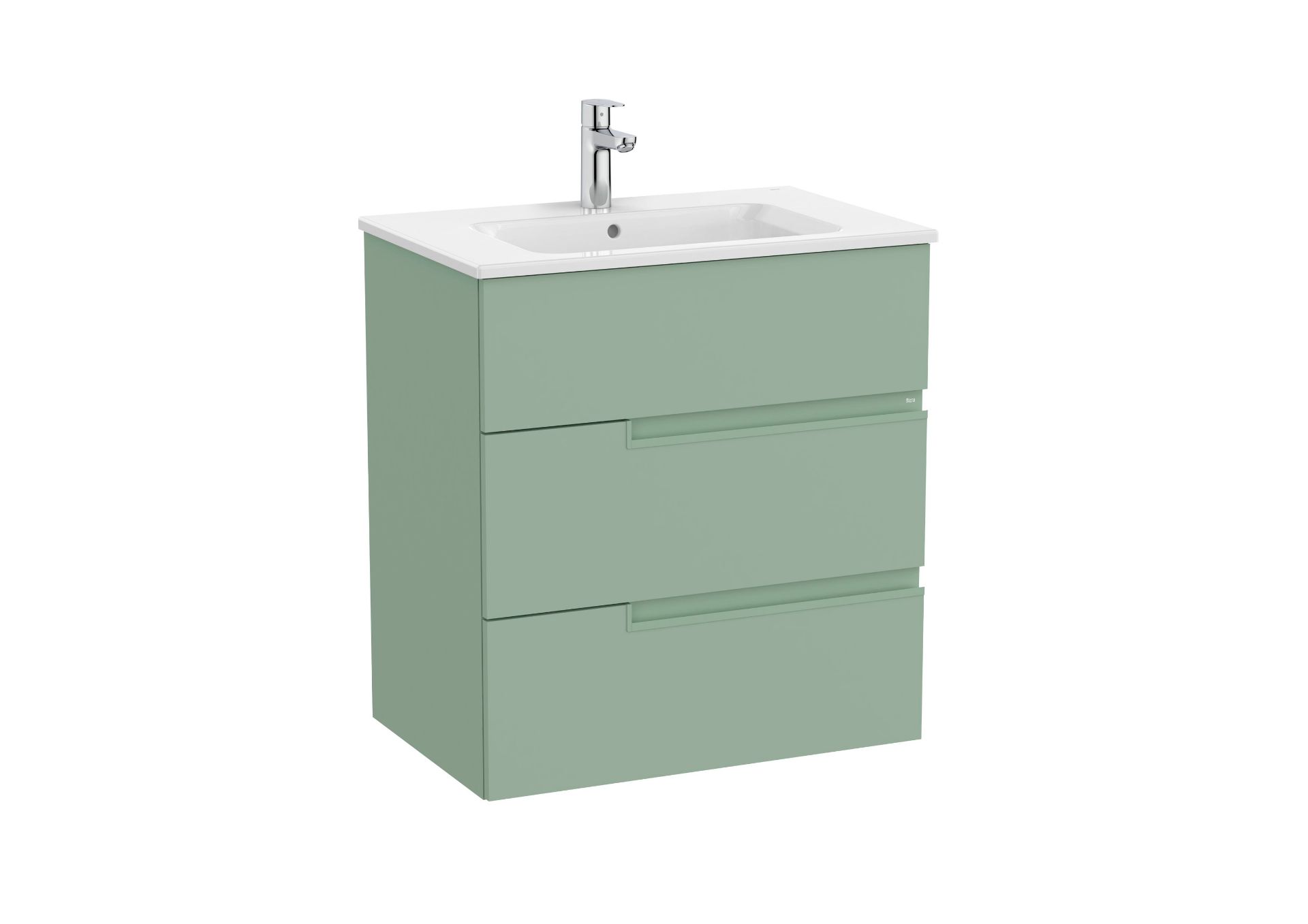 UNIK, MUEBLE Y LAVABO, MODELO VICTORIA-N VERSION 2024 3 CAJONES VERDE SAVIA. MEDIDA 700X460